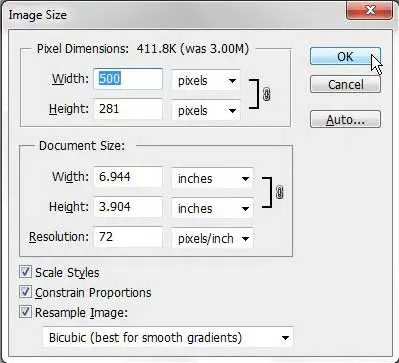 これにより、画像の高さまたは幅に変更する変更が他の次元にも行われ、画像を大規模に保ちます。また、このウィンドウの画像の解像度も調整することもできます。これらの設定の変更が完了したら、クリックしますわかりましたボタン。
