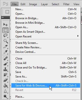 Adobe Photoshopの新しいバージョンでは、「Web&Devicesの保存」オプションを見つけることができない場合があります。ただし、キーボードショートカットを使用できますCtrl + Alt + Shift + SWebオプションの保存を開くには。または、で見つけることができますファイル>エクスポート。