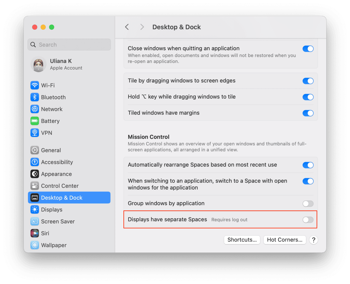 追加のデスクトップを閉じると、Windowserver CPUの使用が下がるのに役立つ場合があります。