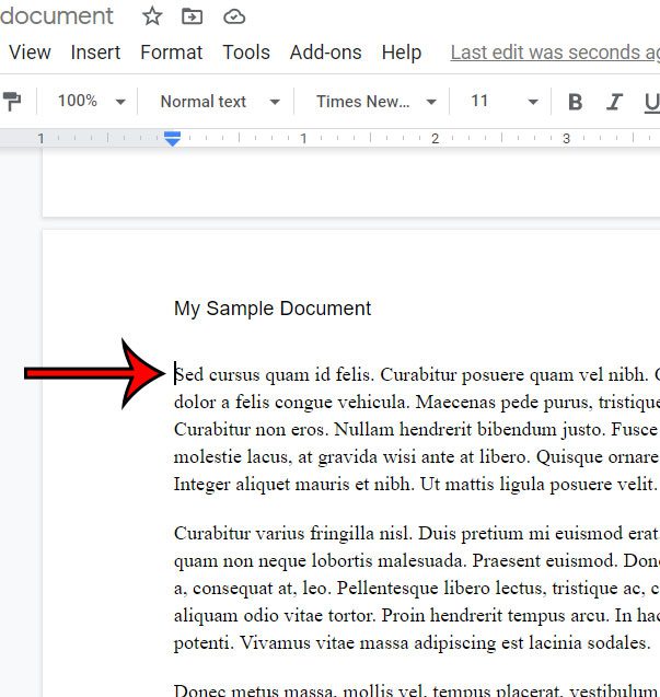 - Googleドキュメントを開き、吊り下げインデントを適用するセクションに移動します。