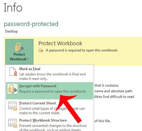 ステップ3:クリックしますワークブックを保護しますボタンをクリックしますパスワードで暗号化しますオプション。