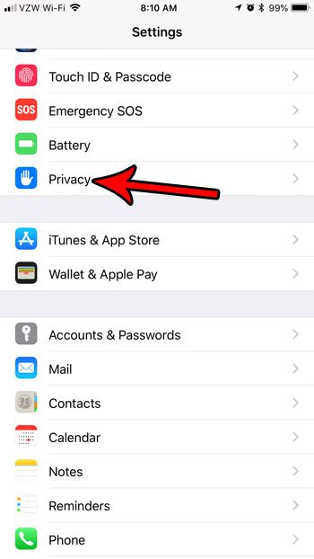 ステップ2:下にスクロールして選択しますプライバシーオプション。