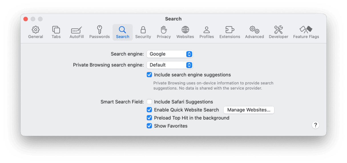 - [検索]タブをクリックして、使用する検索エンジンを選択します。