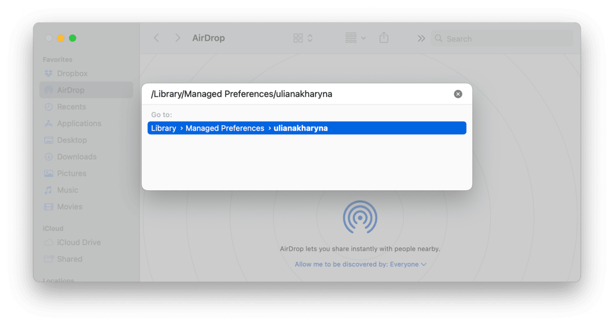 そうでない場合は、Finderを開き、MenubarのGOメニューに移動して>フォルダーに移動し、このディレクトリを貼り付けます。