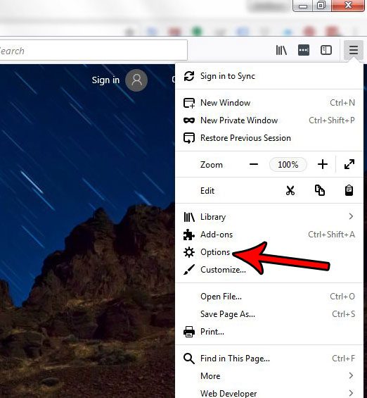 ステップ3:を選択しますオプションメニューからのアイテム。