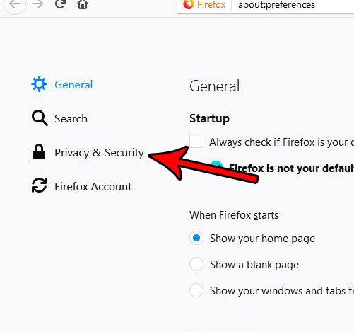 ステップ4:選択しますプライバシーとセキュリティメニューの左側にあるタブ。