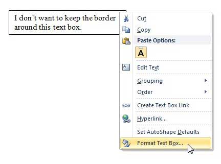 ただし、デフォルトのテキストボックスのフォーマットには、テキストボックスの周りに境界線が含まれています。