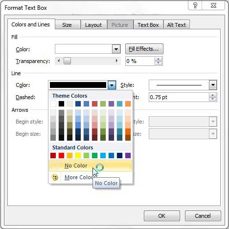 ステップ4:右側のドロップダウンメニューをクリックします色でラインウィンドウのセクション、次にクリックします色はありませんオプション。