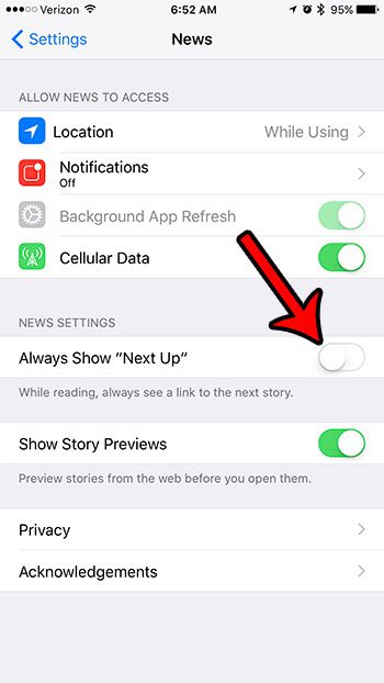 しかし、「次のアップ」リンクを備えたそのバーは、多くの画面スペースを占有し、場合によっては特定の種類のナビゲーションを実行することを困難にすることができます。幸いなことに、iPhoneには、そのバーやリンクの表示など、ニュースアプリの動作の一部をカスタマイズできるオプションが含まれています。以下を読んで、ニュースアプリのこの機能を無効にする方法を確認してください。