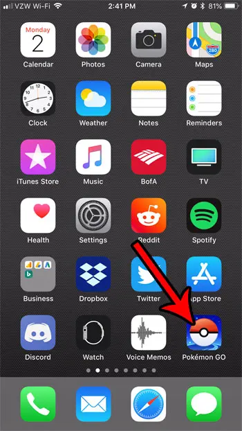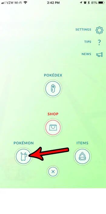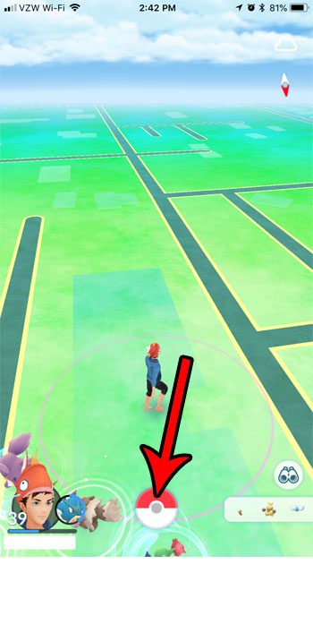 ステップ2:画面の下部中心にある赤と白のポークボールに触れます。