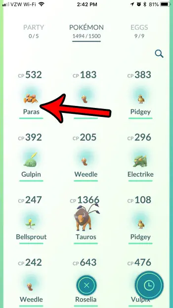 画面の右下隅にある青緑色の円をタップして、ポケモンが現在ソートされている方法を変更できることに注意してください。