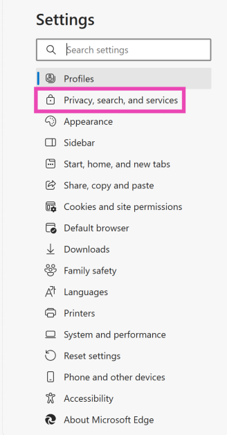 ステップ2:選択しますプライバシー、検索、およびサービス。