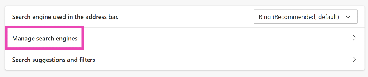 ステップ3:クリックしてください検索エンジンとサイト検索を管理します。