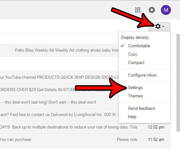 ステップ2:受信トレイの右上にあるギアアイコンをクリックして、選択してから選択します設定オプション。