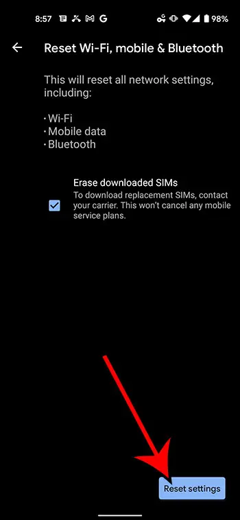 ステップ6:タップしますWi-Fi、Mobile、およびBluetoothをリセットしますオプション。