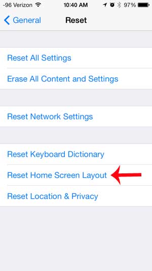 iPhoneの最初のホーム画面(画面の下にあるホームボタンに触れると表示されているもの)は、携帯電話が工場から来たときの様子にリセットされます。