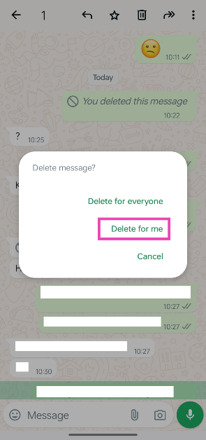ステップ3:タップします私のために削除してください。選択した場合みんなのために削除します、アクションを元に戻すことはできません。