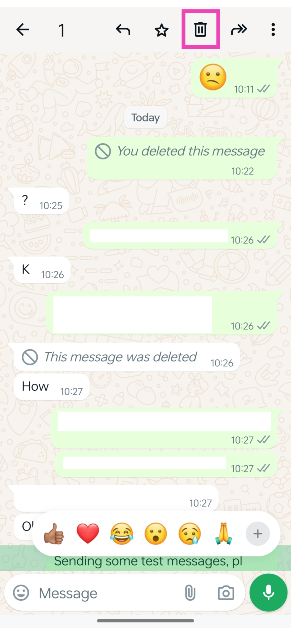 ステップ2: ロングプレス削除してヒットしたいメッセージビンアイコン上部に。