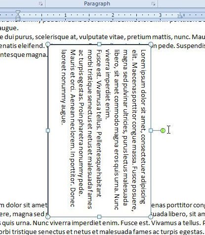 - 上記のセクションのフォーマットタブを使用する代替方法は、単語でテキストボックスを回転させ、90度または180度の回転を必要とする場合、もう少し便利で正確にすることができます。