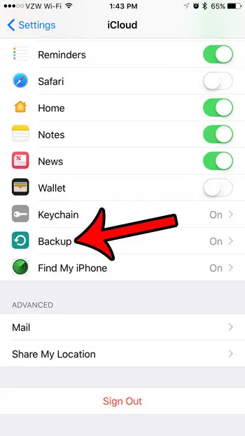 ステップ3:メニューの下部までスクロールして、バックアップオプション。
