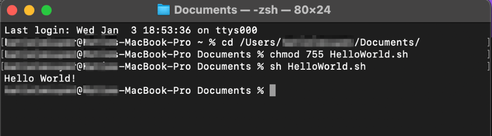 chmod 755 YourFileName.sh最後に、コマンドを使用すると、ファイルを実行できます。