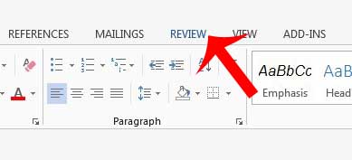 ステップ1:クリックしますレビューウィンドウの上部にあるタブ。