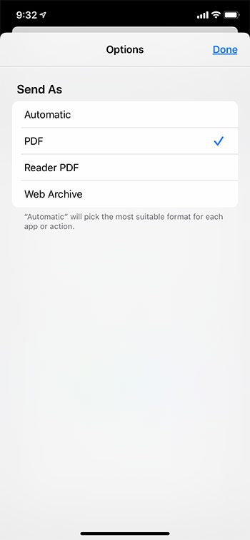 - を選択しますPDFオプション、タップします終わり。
