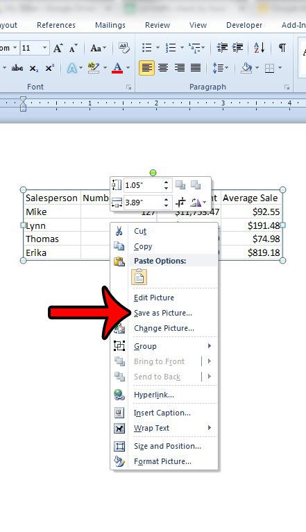次に、Wordドキュメントを閉じる前に画像ファイルを開き、画像が必要な方法で表示されることを確認する必要があります。画像が大きすぎたり小さすぎたりする場合は、サイズを変更する必要がある場合があります。この記事を読んで、2010年の文書で画像のサイズ変更の詳細をご覧ください。