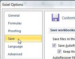ステップ4:クリックします保存の左側の列のオプションExcelオプションウィンドウ。