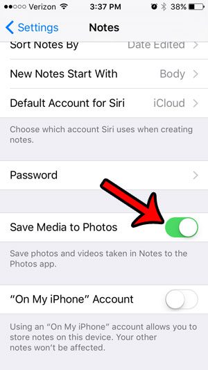 代わりに、カメラロールにメモの画像を保存したくないために反対の結果を探している場合は、これらの手順に従うこともできますが、代わりに最後のステップでオプションをオフにすることもできます。