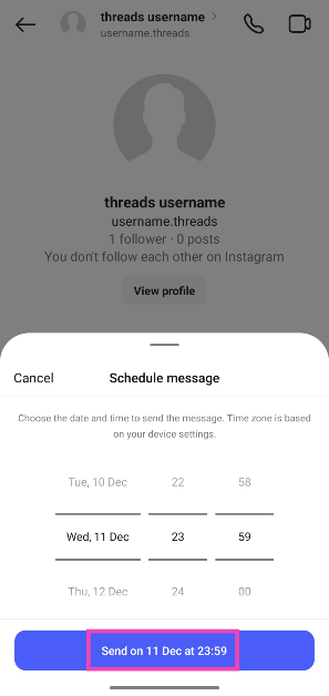 はい、Instagramを使用すると、プラットフォームでメッセージをスケジュールできます。メッセージを入力し、送信ボタンを長時間押して、配達日と時刻を設定します。