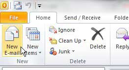 まず、通常どおり Outlook 2010 を起動し、新しいメールウィンドウの左上隅にあるボタン。これは、新しい Outlook 2010 メッセージを作成するときにクリックするボタンです。