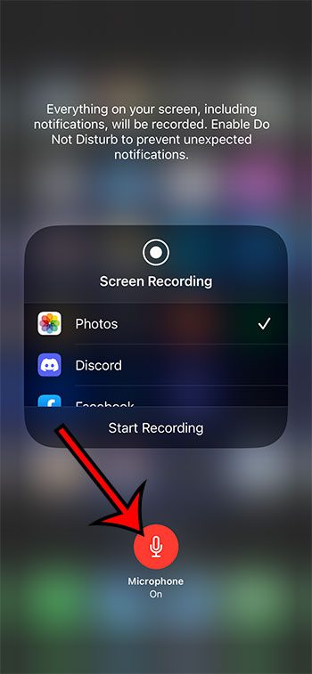これを開くことでこれを行うことができますコントロールセンター、タッピングと保持画面録音ボタン、触れますマイクロフォンボタンをオンにします。