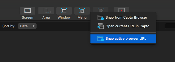 ステップ1:アプリを開き、メニューの上部で「Web」アイコンをクリックします。そこで、WebページのURLをさまざまな方法でスナップすることを選択できます。たとえば、すでにページに載っている場合は、「アクティブなブラウザのURLをスナップする」をクリックするだけです。