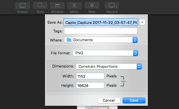 Captoを使用してスクリーンショット全体を撮影する方法は次のとおりです。