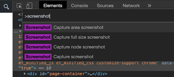 2。コマンドメニュー(コマンド +シフト + P)を開き、「スクリーンショット」を入力します