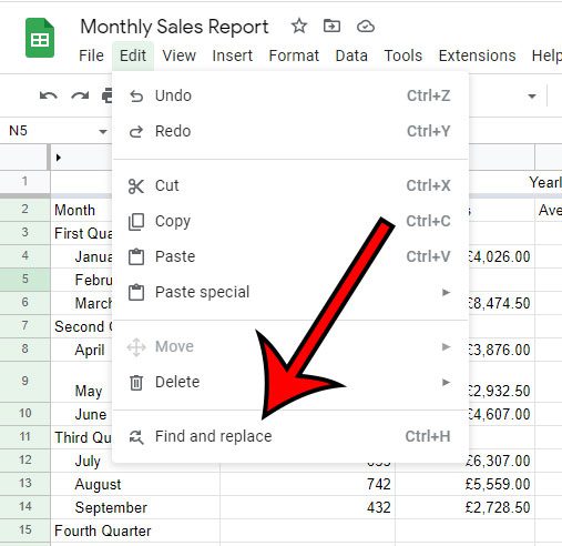 ステップ2:そこで、Googleシートに「検索と交換」メニューがあります。それをクリックすると、新しいウィンドウが開きます。