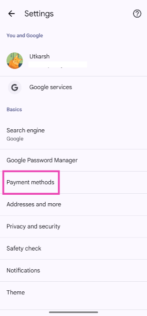 Google Chromeは、配送先住所、電話番号、電子メールを簡単に保存することもできます。これは、インターネットからものを注文する際に非常に便利です。毎回配送先住所を手動で入力する代わりに、Chromeにそれを行わせることができます。この機能は、e-cartのものをチェックアウトしながら、「支払いオプション」と連携してシームレスに機能します。保存されたカードの詳細は、支払い方法に保存されます。 Googleは購入する前にCVV/OTPコードを要求しますが、代わりに電話の画面ロックパスワード/PINを使用できるようになりました。