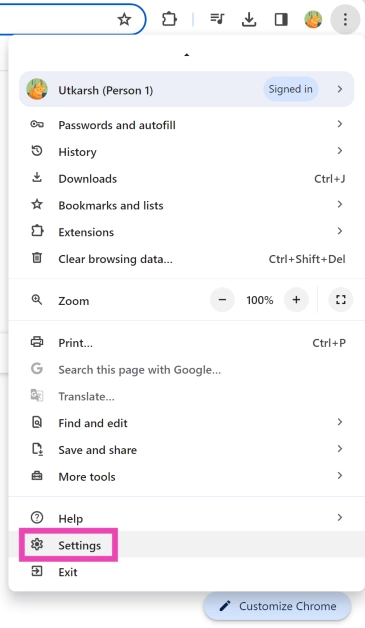 ステップ1:PCでGoogle Chromeを起動してヒットします楕円画面の右上隅に。
