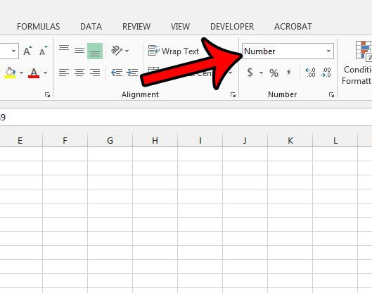ステップ4:上部にドロップダウンメニューを見つけます番号リボンのセクション。