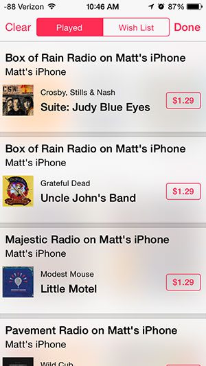 幸いなことに、iPhone 5にはiTunes Radioで聴いている曲の歴史があり、いつでも視聴している曲の名前とアーティストを見つけることができます。