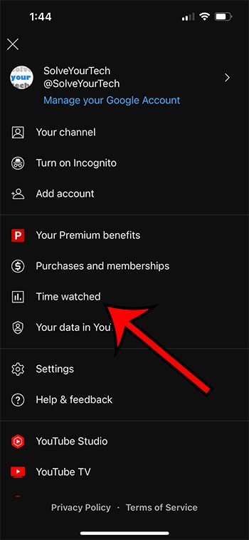 私たちのガイドは、これらの手順の写真を含め、iPhone 13でYouTubeであなたの合計時計時間を見る方法に関する追加情報を以下に続けます。