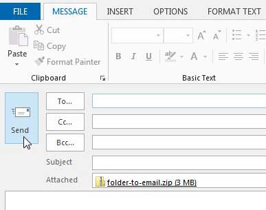 そのため、すべてのファイルを適切に整理して、それらがすべて1つのフォルダーに一緒になるようにしたら、以下の手順に従ってOutlook 2013のフォルダーに電子メールを送信できます。