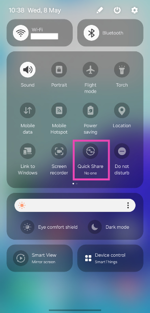 ステップ5:オンにするクイックシェアからクイック設定メニューにターゲットデバイス。