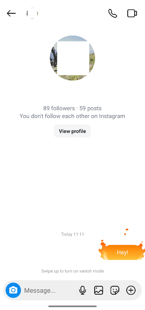 Vanishモードは、チャットの下部からスワイプすることで有効にできます。チャットが消滅するように設定されると、メッセージは短命になります。これは、チャットで送信するものはすべて、誰かがページを離れるか、モードを無効にするとすぐに削除されることを意味します。