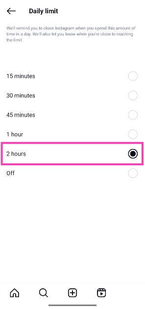 Instagramの時間管理ツールを使用すると、アプリの毎日の時間制限を設定できます。行きますInstagram>プロフィール>メニュー>時間管理、「毎日の制限」をタップし、時間制限を設定します。