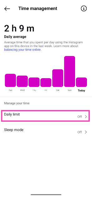 ステップ6:ここで、先週Instagramで過ごした時間のグラフが表示されます。タップします毎日の制限。