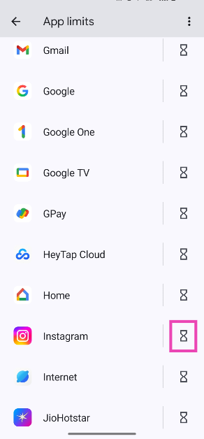 ステップ3:下にスクロールしてタップします砂時計のアイコンの隣にInstagram。