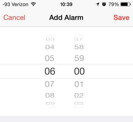 ステップ4:画面上部のスクロールホイールを使用して、アラームの時間を選択します。