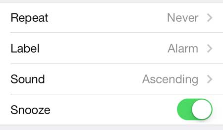 ステップ7:その後、タッチできますラベルオプションとアラームの名前を入力し、さらに触れることができます音オプションとアラームのサウンドを選択すると、次のスライダーを調整できますスヌーズアラームでスヌーズオプションを自分に与えたいかどうかに応じて。